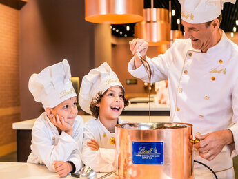 Die Schokoladenwelt von Lindt Home of Chocolate ist immer ein Highlight! Als Auftakt wird uns bereits der spektakuläre Schokoladenbrunnen ins