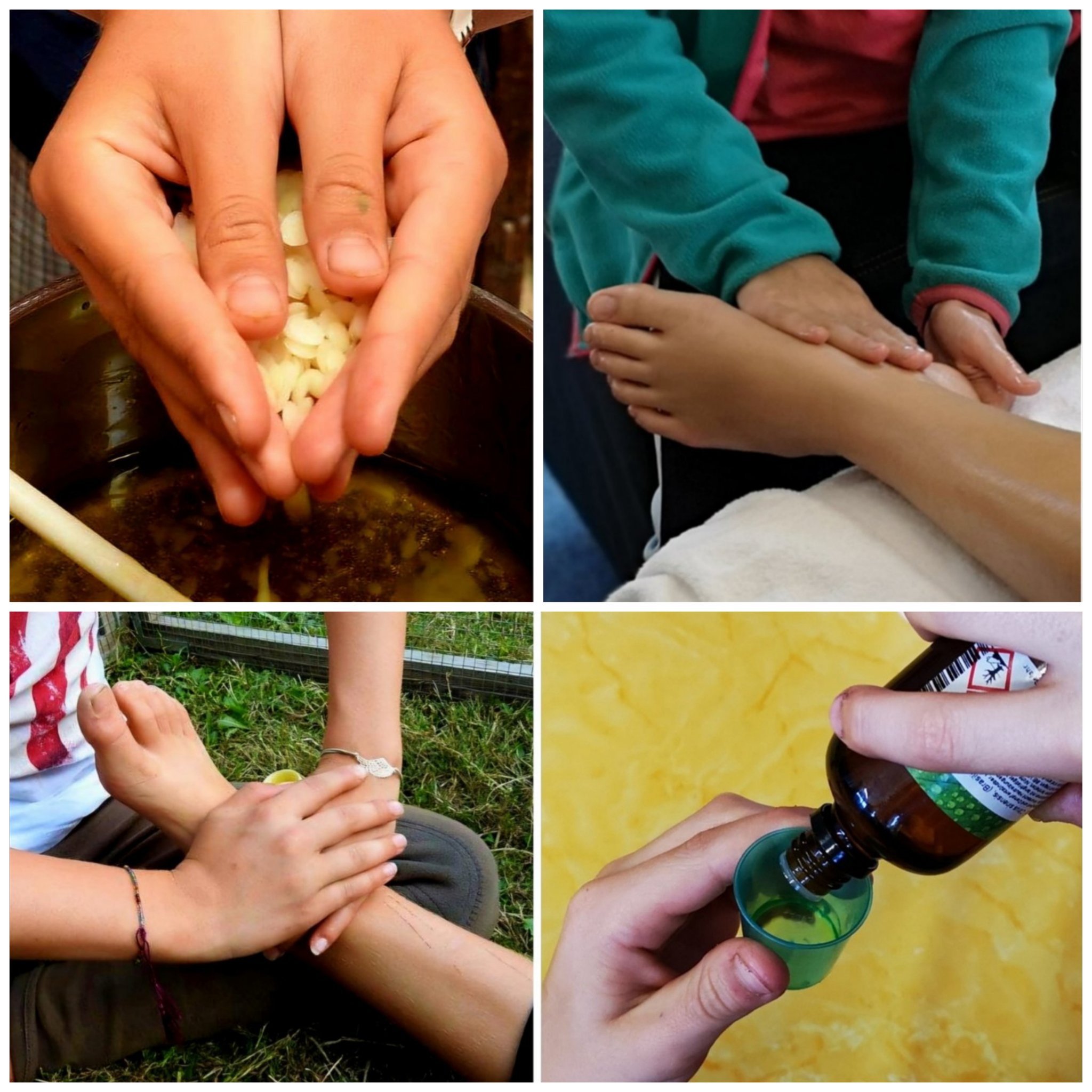 Du mischst dir dein eigenes Massagebalsam aus natürlichen Düften und Zutaten und lässt es dir gut gehen bei einer Hand- und Fussmassage.